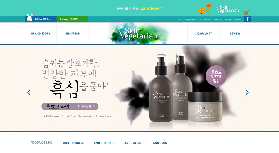 순수 식물성성분을 사용하며, 동물실험을 하지 않는 회사로 알려진 스킨베지테리언의 피부채식주의 화장품 사이트
